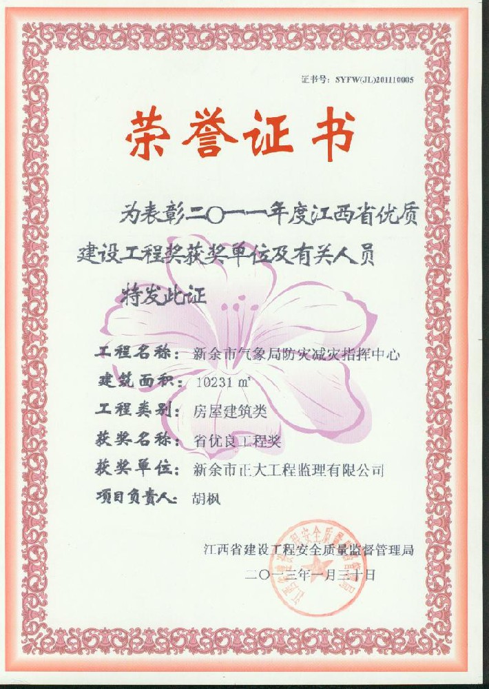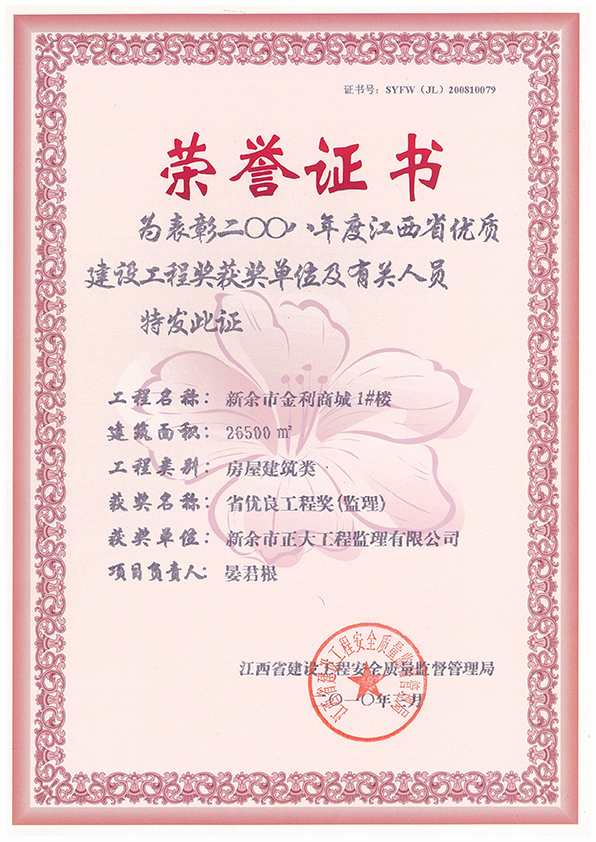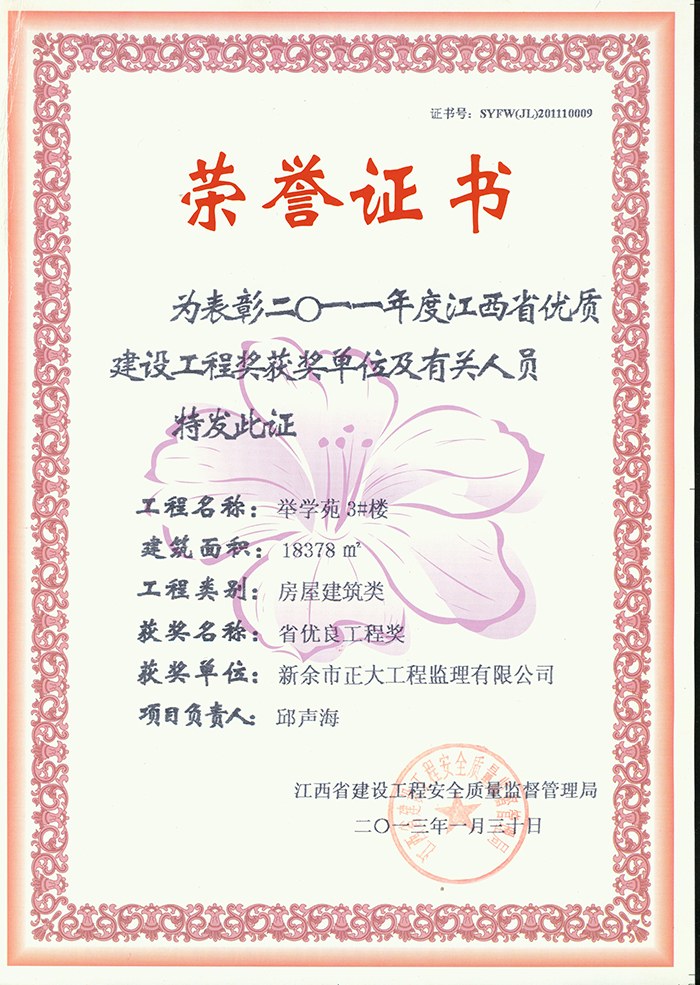 新余市正大工程監(jiān)理有限公司依托新余市建筑設(shè)計院,于1995年11月成立,是新余市開展監(jiān)理工作最早的監(jiān)理單位,本公司具有建設(shè)部核發(fā)的房屋建筑工程甲級監(jiān)理資質(zhì)、市政公用工程乙級監(jiān)理資質(zhì)、國家人防辦核發(fā)的人防工程監(jiān)理乙級資質(zhì)。我公司始終堅持“客戶至上、質(zhì)量第一、信守合同”的經(jīng)營理念;追求“為社會創(chuàng)造價值、為業(yè)主創(chuàng)造效益、為自身謀求發(fā)展”的經(jīng)營宗旨;遵循“守法、誠信、公正、科學(xué)、優(yōu)質(zhì)、高效”的工作原則,以雄厚的技術(shù)力量、完善的管理制度、豐富的監(jiān)理經(jīng)驗、良好的企業(yè)信譽迅速成為我市監(jiān)理行業(yè)的一支新銳力量! 查看更多>>